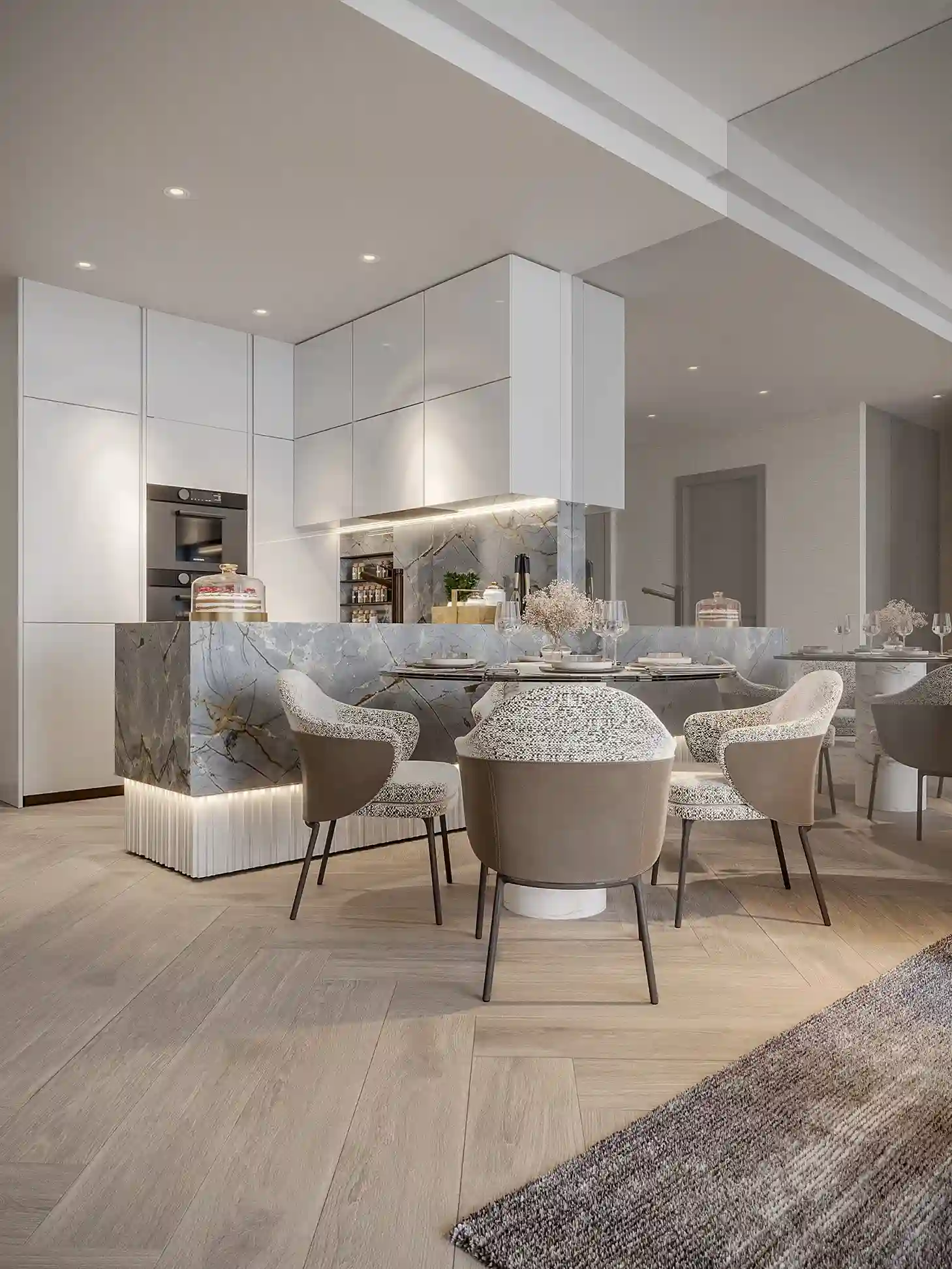 Cove by Imtiaz представляет тщательно продуманные интерьеры, украшенные неподвластными времени материалами и непревзойденной отделкой. Его трансцендентальная эстетика и гармоничный пространственный дизайн повышают благосостояние жителей.